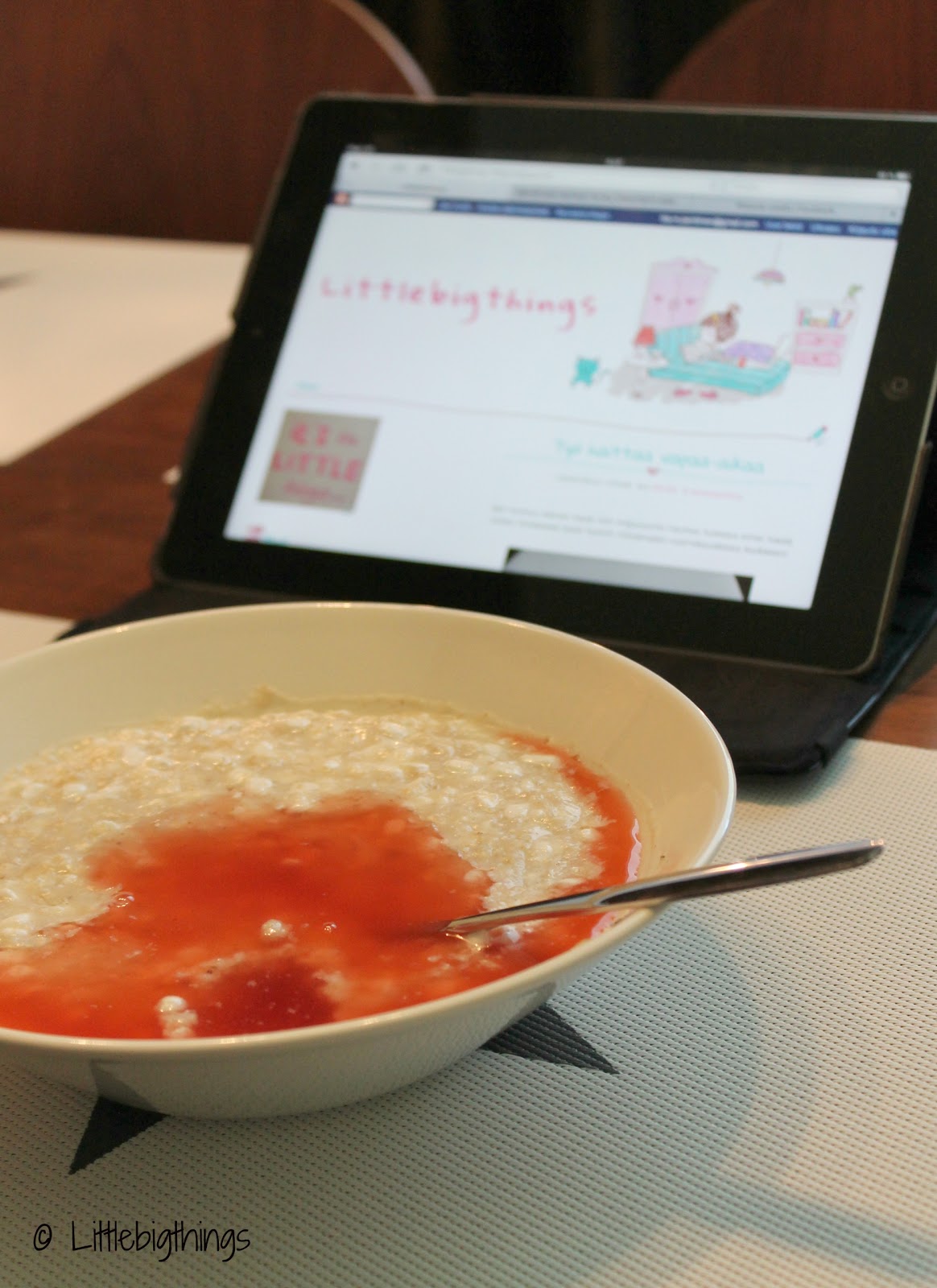 syödä aamupuuroa rauhassa blogeja lueskellen,